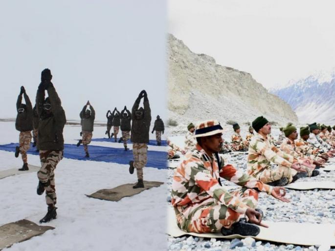 1 / 11आज संपूर्ण जगात सातवा आंतरराष्ट्रीय योग दिवस (International Yoga Day 2021) साजरा केला जात आहे. आंतरराष्ट्रीय योगा दिवसानिमित्ताने पंतप्रधान नरेंद्र मोदी यांनी नागरीकांशी संवाद साधला आणि जीवनातील योगाचं महत्व सांगितलं. आता देश-विदेशातील लोक सोशल मीडियावर योगा करतानाचे फोटो शेअर करत आहेत. यात सेनेचे जवानही मागे नाहीत. वेगवेगळ्या सीमांवर उभ्या असलेल्या जवानांनीही योग केला.2 / 11लडाखच्या पॅंगोंग त्सो सरोवराजवळ भारत-तिबेट सीमेवरील जवानांनी आंतरराष्ट्रीय योग दिवसानिमित्त एकत्र जमत योगा केला. येथील तापमान फार कमी असतानाही त्यांनी योगा केला.3 / 11तसेच जैसलमेल शाहगढमधील सीमेवरही BSF सेक्टर साउथचे डीआयजी आनंद सिंह तकसत यांच्या मार्गदर्शनात BSF जवानांनी उंटांसोबत योगा केला. 4 / 11तर अरूणाचल प्रदेशात तैनात ITBP चे जवानही मागे नाहीत. जवानांनी लोहितपूर अॅनिमल ट्रेनिंग स्कूलमध्ये एकत्र योगा केला. यादरम्यान काही जवानांनी घोड्यावर उभे राहून योगा केला.5 / 11हा फोटो आहे लडाखमधील जिथे ITBP जवानांनी १८ हजार फूट उंचीवर गोठवणाऱ्या थंडीत योगा केला.6 / 11लडाखच्या उंच पर्वतांवर नेहमीच तापमान मायनस डिग्री असतं. अशात जवानांनी योगा डे निमित्त योगा करत आपली इच्छाशक्ती किती मजबूत आहे हे दाखवून दिलं.7 / 11लडाखच्या उंच पर्वतांवर नेहमीच तापमान मायनस डिग्री असतं. अशात जवानांनी योगा डे निमित्त योगा करत आपली इच्छाशक्ती किती मजबूत आहे हे दाखवून दिलं.8 / 11लडाखच्या उंच पर्वतांवर नेहमीच तापमान मायनस डिग्री असतं. अशात जवानांनी योगा डे निमित्त योगा करत आपली इच्छाशक्ती किती मजबूत आहे हे दाखवून दिलं.9 / 11लडाखच्या उंच पर्वतांवर नेहमीच तापमान मायनस डिग्री असतं. अशात जवानांनी योगा डे निमित्त योगा करत आपली इच्छाशक्ती किती मजबूत आहे हे दाखवून दिलं.10 / 11लडाखच्या उंच पर्वतांवर नेहमीच तापमान मायनस डिग्री असतं. अशात जवानांनी योगा डे निमित्त योगा करत आपली इच्छाशक्ती किती मजबूत आहे हे दाखवून दिलं.11 / 11लडाखच्या उंच पर्वतांवर नेहमीच तापमान मायनस डिग्री असतं. अशात जवानांनी योगा डे निमित्त योगा करत आपली इच्छाशक्ती किती मजबूत आहे हे दाखवून दिलं.