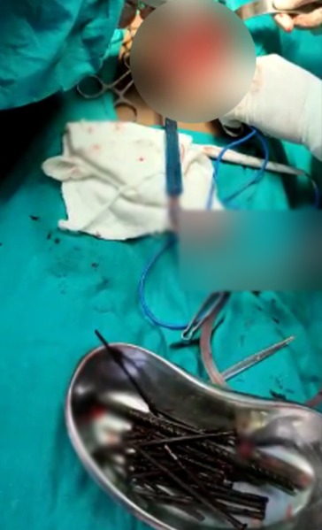 ऑपरेशनवेळी रुग्णाच्या पोटातून एक स्क्रू ड्रायव्हर, लोखंडी लहान बार, खिळे आणि पाच-सहा लहान सुया बाहेर काढल्या. जवळपास पोटात लहान-मोठ्या मिळून ३६ वस्तू होत्या. त्याचे वजन ३०० ग्रॅम इतके होते.