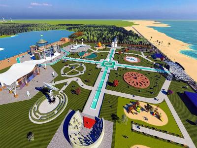 याशिवाय गार्डन आहे. कारंजे आहेत. एका बाजूला तलाव आणि दुसऱ्या बाजूला समुद्र दाखवला आहे. विशेष म्हणजे, सेल्फी पॉईंट आहे. त्या ठिकाणी I Love ISRO असे बनवले आहे. ज्याच्या मागे म्युझियम आणि तीन रॉकेट्स दिसतात.