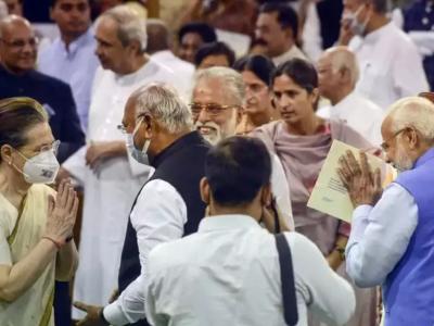 पंतप्रधान नरेंद्र मोदी आणि यूपीए अध्यक्षा सोनिया गांधी हे दोघेही शपथविधी सोहळ्यात सहभागी झाले होते. एक वेळ अशी आली की दोन्ही नेते आमने-सामने आले. दोघांनी एकमेकांना हात जोडून अभिवादन केलं. यात मध्येच मल्लिकार्जुन खरगे आणि इतर नेते देखीलसोबत होते.