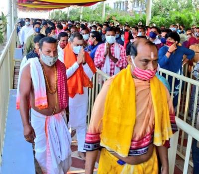 भाविकांना तब्बल 9 महिन्यांनंतर मंदरिाचे दर्शन घेण्याचा लाभ मिळाला, त्यानिमित्त भाजपाचे राष्ट्रीय प्रवक्ते संबित पात्रा यांनी जगन्नाथ मंदिरात जाऊन प्रभूंचे दर्शन घेतले.
