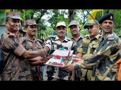 एकमेकांना मिठाई आणि भेटवस्तू देत जवानांनी दिवाळी साजरी केली.
