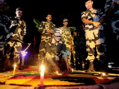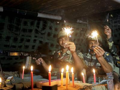बुधवारी संध्याकाळी जवानांनी सीमारेषेवर मेणबत्त्या प्रज्वलित केल्या. तसंच फटाकेही उडविले.