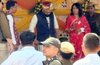 वरमाला आणि सप्तपदी पोलिसांच्या कडेकोट सुरक्षा व्यवस्थेत पूर्ण झाली. विवाहासाठी पुरोहितांनी १२ च्या आसपासचा मुहूर्त काढला होता.