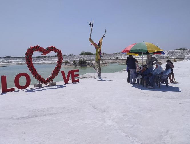 या ठिकाणाचं वैशिष्ट्य म्हणजे येथे मार्बलची धूळ जमा होते आणि ती बर्फाच्या डोंगरांसारखी दिसते. सगळीकडे पांढरे पर्वत, जमीन आणि मध्ये निळं पाणी असं नयनरम्य दृष्य येथे दिसतं. हे सुंदर दृष्य पाहण्यासाठी पर्यटक येथे येतात.