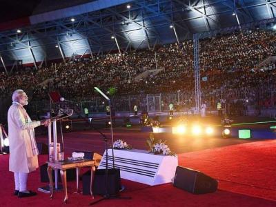 कसे काम करते पंतप्रधानांचे टेलीप्रॉम्पटर? - अशा प्रकारच्या टेलीप्रॉम्पटरला Conference Teleprompter देखील म्हटले जाते. यात LCD मॉनिटर खालच्या बाजुला असते. ज्याचा फोकस वरच्या बाजुला असतो. वक्त्याच्या आस-पास ग्लास लगलेले असतात. ते अशा प्रकारे अलाय केलेले असतात, की LCD मॉनिटरवरील टेस्क्ट त्यांवर रिफ्लेक्ट होतात. अशा प्रकारे पंतप्रधान मोदी आपले भाषण कुठल्याही अडथळ्याशिवाय टेलीप्रॉम्पटरच्या सहाय्याने पूर्ण करतात.