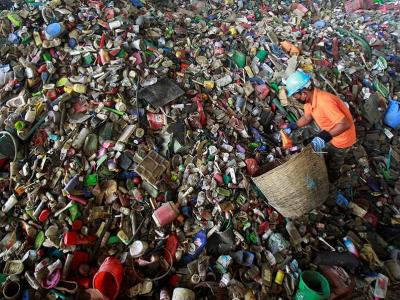 अगरताळ्याच्या प्लास्टिक रिसायकलिंग फॅक्टरीत काम करण्यात व्यस्त असलेला कामगार.