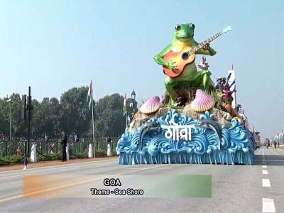 गोवा ही पर्यटन राजधानी म्हणून ओळखली जाते, त्यामुळेच समुद्रकिनारच्या पर्यटन संस्कृतीचे दर्शन गोव्याच्या चित्ररथात पाहायला मिळाले.