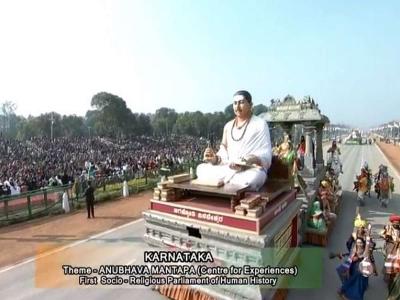 कर्नाटक सरकारने बसवेश्वर महाराजांची कलाकृती सादर करत, पहिली सर्वधर्म समभावाची संसद चालविणारी थीम दर्शवली