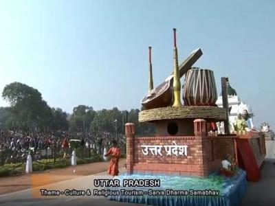 उत्तर प्रदेशने सर्व धर्म समभावाचे दर्शन घडविणाऱ्या संस्कृतीच्या चित्ररथाचं प्रदर्शन केल्याचं पाहायला मिळालं