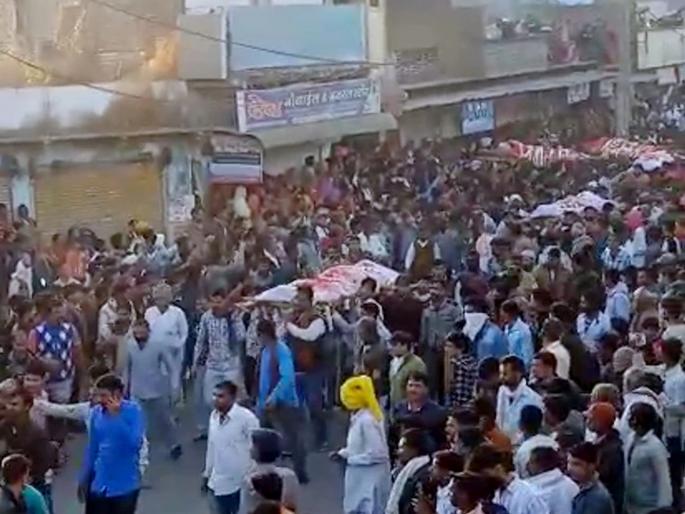 1 / 10मध्य प्रदेशच्या राजगढ जिल्ह्यातल्या ८ जणांचा भीषण अपघातात मृत्यू झाला आहे. मृत्यूमुखी पडलेले सर्व जण एकाच कुटुंबातील आहेत. यातील ६ जणांवर एकाच ठिकाणी अंत्यसंस्कार करण्यात आले. ते पाहून उपस्थितांचे डोळे पाणावले.2 / 10अपघातापूर्वी कुटुंबातील सदस्यांनी एकाचा जन्मदिन साजरा करण्यात आला. वाढदिवस साजरा करून कुटुंब प्रवासाला निघालं. राजस्थानच्या टोंकमध्ये भरधाव ट्रेलरनं कुटुंबीय प्रवास करत असलेल्या जीपला धडक दिली. त्यात ८ जणांचा मृत्यू झाला.3 / 10राजगढच्या जीरापूरमध्ये दोन चुलत भाऊ ललित सोनी आणि पवन सोनी १ जानेवारीला खाटू श्याम पदयात्रेसाठी निघाले. त्यांना तिथून परत आणण्यासाठी कुटुंबातील इतर सदस्य दोन गाड्या घेऊन खाटू श्यामला पोहोचले.4 / 10२६ जानेवारीला दर्शन घेतल्यानंतर संपूर्ण कुटुंब दोन गाड्यांमधून घरी परतत होतं. त्यावेळी पुढे असलेल्या गाडीला अपघात झाला. 5 / 10टोंक जिल्ह्यातल्या राष्ट्रीय द्रुतगती मार्ग क्रमांक ५२ वर मंगळवारी रात्री गाडीला भीषण अपघात झाला. जयपूरहून येणाऱ्या तुफान गाडीला मागून भरधाव आलेल्या ट्रेलरनं धडक दिली. यात मध्य प्रदेशच्या राजगढ जिल्ह्यातील एकाच कुटुंबातील ८ जणांचा जागीच मृत्यू झाला आहे.6 / 10मृत्यूमुखी पडलेल्यांमध्ये ३ पुरुष, २ महिला आणि ३ लहान मुलांचा समावेश आहे. या दुर्घटनेत चार जण गंभीर जखमी झाले आहेत. त्यांना आधी प्राथमिक उपचार केंद्रात दाखल करण्यात होतं. नंतर त्यांना जयपूरमध्ये हलवण्यात आलं.7 / 10तुफान गाडीचा चालक आणि एक लहान मुलगी सुखरूप आहे. अपघातानंतर चालक घटनास्थळाहून फरार झाला. ट्रेलर चालकानंदेखील तिथून पळ काढला.8 / 10ट्रेलर आणि तुफान गाडीची धडक इतकी भीषण होती की दोन्ही गाड्या एकमेकांमध्ये अडकल्या. पोलिसांनी क्रेनच्या मदतीनं दोन्ही वाहनं वेगवेगळी करून आठ मृतदेह बाहेर काढले.9 / 10आठ मृतदेहांपैकी ६ जणांवर बुधवारी जीरापूरमध्ये अंत्यसंस्कार करण्यात आले. तर दोघांवर आज मक्सीमध्ये अंत्यसंस्कार झाले.10 / 10श्याम खाटूहून परतत असताना काही तासांपूर्वीच कुटुंबातील रामबाबू सोनी यांचा वाढदिवस साजरीा करण्यात आला. त्यावेळी संपूर्ण कुटुंब एकत्र होतं. रामबाबू यांचा मुलगा नयननं पुष्पगुच्छ देऊन वडिलांना शुभेच्छा दिल्या होत्या. त्यानंतर काही तासांतच झालेल्या अपघातानं होत्याचं नव्हतं केलं.