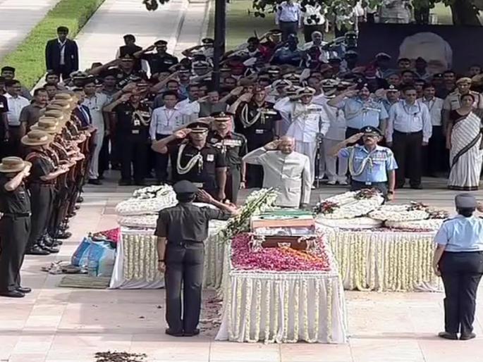 1 / 12नवी दिल्ली: माजी पंतप्रधान अटलबिहारी वाजपेयी यांचं वयाच्या 93 व्या वर्षी निधन झालं. दिल्लीतील एम्स रुग्णालयात त्यांची गुरुवारी प्राणज्योत मालवली.2 / 12अटलबिहारी वाजपेयी यांच्या पार्थिवावर शुक्रवारी दिल्लीतील राष्ट्रीय स्मृतीस्थळ येथे शासकीय इतमामात अंत्यसंस्कार करण्यात आले. त्यांची मानसकन्या नमिता भट्टाचार्य यांनी मंत्राग्नी दिला. 3 / 12यावेळी राष्ट्रपती राष्ट्रपती रामनाथ कोविंद, पंतप्रधान नरेंद्र मोदी, माजी पंतप्रधान मनमोहनसिंह, लालकृष्ण आडवाणी, अमित शहा आणि तिन्ही सेनादल प्रमुखांनी पुष्पचक्र अर्पण केले. 4 / 12तसेच, त्यांना 300 जवानांनी अखेरची मानवंदना दिली.5 / 12अनेक पक्षांचे नेते, भाजप कार्यकर्ते, विविध क्षेत्रातील मान्यवरांनी त्यांचे अंत्यदर्शन घेतले.6 / 12अनेक पक्षांचे नेते, भाजप कार्यकर्ते, विविध क्षेत्रातील मान्यवरांनी त्यांचे अंत्यदर्शन घेतले.7 / 12अनेक पक्षांचे नेते, भाजप कार्यकर्ते, विविध क्षेत्रातील मान्यवरांनी त्यांचे अंत्यदर्शन घेतले.8 / 12अनेक पक्षांचे नेते, भाजप कार्यकर्ते, विविध क्षेत्रातील मान्यवरांनी त्यांचे अंत्यदर्शन घेतले.9 / 12अनेक पक्षांचे नेते, भाजप कार्यकर्ते, विविध क्षेत्रातील मान्यवरांनी त्यांचे अंत्यदर्शन घेतले.10 / 12अनेक पक्षांचे नेते, भाजप कार्यकर्ते, विविध क्षेत्रातील मान्यवरांनी त्यांचे अंत्यदर्शन घेतले.11 / 12अनेक पक्षांचे नेते, भाजप कार्यकर्ते, विविध क्षेत्रातील मान्यवरांनी त्यांचे अंत्यदर्शन घेतले.12 / 12अनेक पक्षांचे नेते, भाजप कार्यकर्ते, विविध क्षेत्रातील मान्यवरांनी त्यांचे अंत्यदर्शन घेतले.
