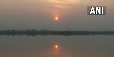 दिल्लीच्या यमूना नदी काठी टिपण्यात आलेल्या सूर्यास्ताचं नयनरम्य दृश्य.