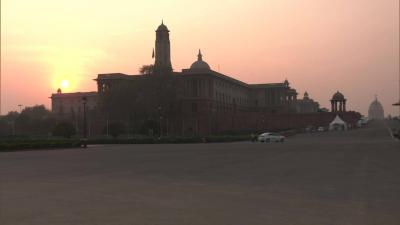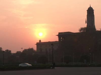 दिल्लीच्या विजय चौक परिसरातील सूर्यास्त.