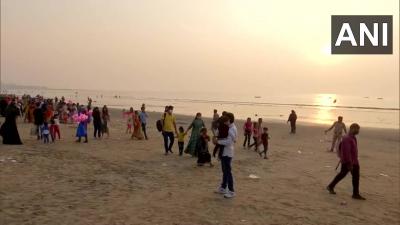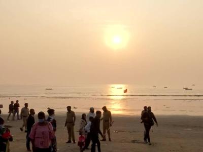 मुंबईत कोरोनामुळे निर्बंध लागू असतानाही जुहू चौपाटीवर अजूनही तुरळक स्वरुपात गर्दी पाहायला मिळत आहे.