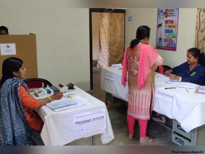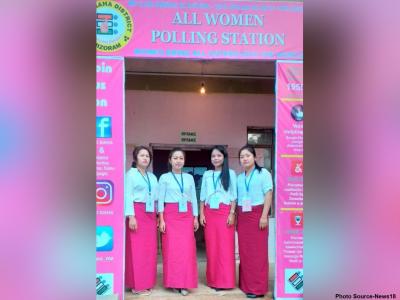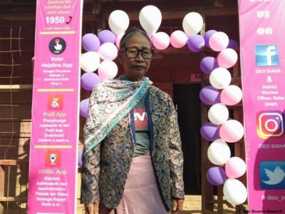 मिझोराममधल्या डिंगडीमध्येही पोलिंग बुथवर महिला अधिकाऱ्यांना आकाशी रंगांचे कपडे परिधान करून मतदारांचं स्वागत केलं.