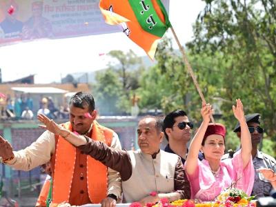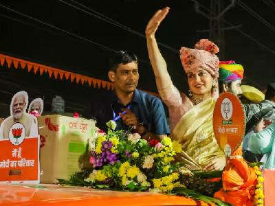 बॉलिवूड अभिनेत्री आणि भाजपच्या मंडी येथील उमेदवार कंगना रणौत यांनी बुधवारी राजस्थानमध्ये रोड शो केला. यावेळी त्यांनी भाजपला मतदान करण्याचे आवाहन जनतेला केले.