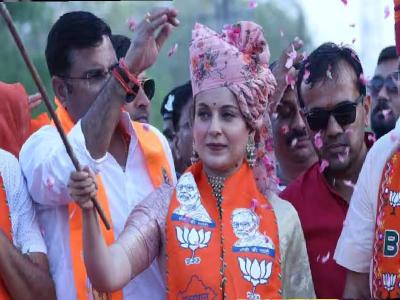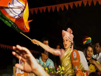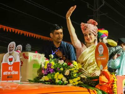 भाजप उमेदवार कंगना राणौत यांनी राजस्थानमध्ये भाजपच्या विजयासाठी रोड शो केला.