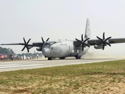 भारतीय हवाई दलाने 'C-130 सुपर हर्क्युलिस' हे महाकाय मालवाहतूक विमान एक्सप्रेस वे वर उतरविले. एकप्रकारे हवाई दलाने या विमानाचे यशस्वी लँडिंग करुन दाखवण्याचा पराक्रम केला. 900 कोटी रुपये या विमानाची किंमत आहे. या विमानाच्या लँडिंगने सरावाला सुरुवात झाली.