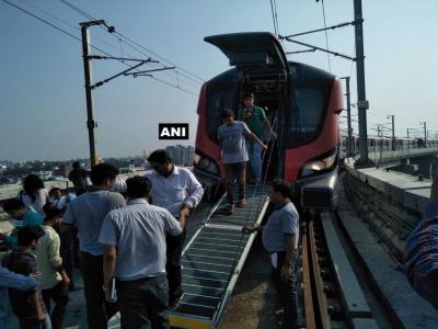 मेट्रोच्या पहिल्याच फेरीच्यावेळी तांत्रिक बिघाड उद्भवला. त्यामुळे मेट्रोत १०० हून प्रवासी तासाभरापेक्षाही अधिक काळ अडकून पडले होते. त्यांना नंतर आपत्कालीन दरवाज्यातून बाहेर काढण्यात आलं.