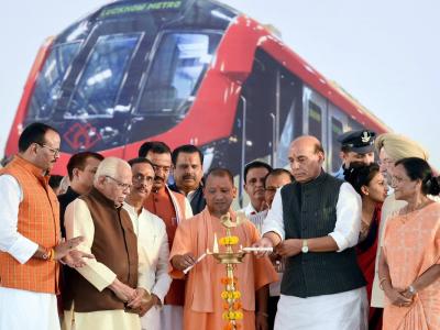 केंद्रीय गृहमंत्री राजनाथ सिंह आणि उत्तर प्रदेशचे मुख्यमंत्री योगी आदित्यनाथ यांनी मंगळवारी लखनऊ मेट्रोला हिरवा कंदील दाखवला.