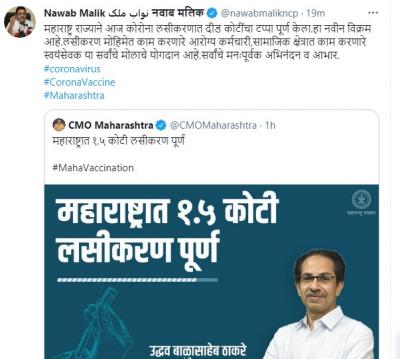 महाराष्ट्राने आज दीड कोटी लसीकरणाचा टप्पा गाठला असून देशात सर्वाधिक लसीकरण करणाऱ्या राज्यांमध्ये महाराष्ट्राचा पहिला नंबर आहे. मुख्यमंत्र्यासह अनेक मंत्र्यांनी ट्विट करुन याबाबत माहिती दिली.