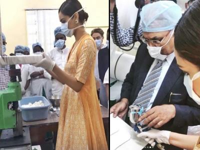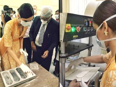 मिस वर्ल्डचा किताब जिंकणारी मानुषी छिल्लर सोमवारी बायोडिग्रेडेबल सॅनेटरी नॅपकिन्स तयार करण्याच्या उपक्रमात सहभागी झाली होती.