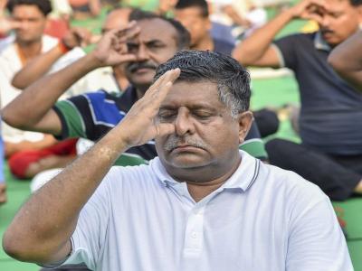पटनामध्ये केंद्रीय कायदा मंत्री रविशंकर प्रसाद यांनी योग केला.