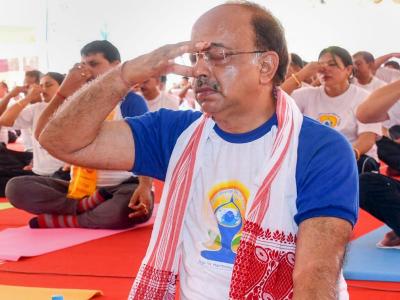 गुवाहटी येथे संसदीय कामकाज राज्यमंत्री विजय गोयल यांनी योग केला.
