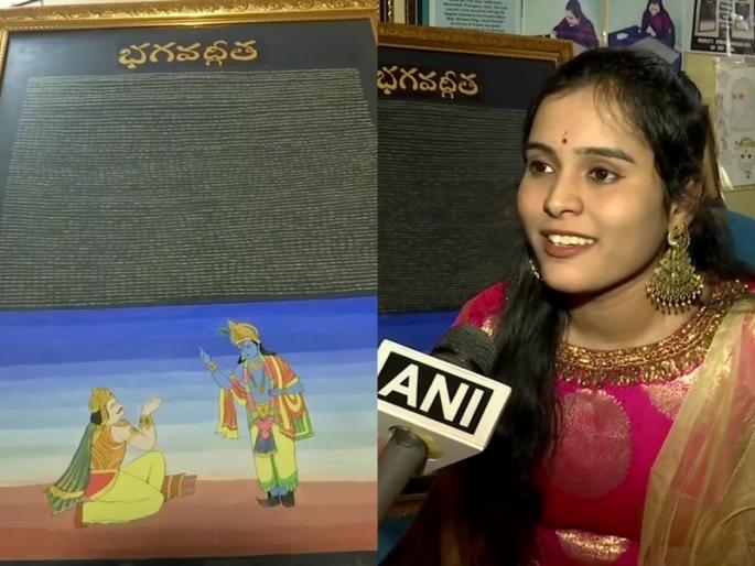 1 / 12भारतीय ग्रंथ सारस्वतामध्ये सर्वांचा मुकूटमणी म्हणून कोणता ग्रंथ असेल तर भगवद् गीता होय. प्राचीन भरतवर्षातील या ग्रंथाने मानवी जीवन कसे जगावे याचा आदर्श वस्तुपाठच विशद केला आहे. 2 / 12अर्जुन या ग्रंथाचा नायक असून भगवान श्रीकृष्ण या ग्रंथाचे महानायक आहेत. आपल्या प्राणसख्या असणा-या अर्जुनाला ते त्याच्या जीवनातील अडचणी सोडविण्यासाठी सांगितलेले जीवनावश्यक तत्वज्ञान म्हणजे युद्धभूमीवरील गीता ग्रंथ होय.3 / 12मानवी जीवनसुद्धा एक युद्धभूमी असून प्रत्येकाला आपले जीवनप्रश्न व समस्या सोडविण्यासाठी एका आदर्श मार्गदर्शकाची आवश्यकता असते. ख-या ज्ञानाची गरज भासते. 4 / 12मानवी जीवन हे जेंव्हा काय करावे? व काय करू नये? अशा द्वंवद्ववामध्ये सापडते तेव्हा कोणता विचार अंगिकारावा हा प्रश्न पडतो. त्यावेळी एकच भगवद्गीता विचार आपल्या सर्व प्रश्नांना उत्तर शोधुन देऊ शकतो. 5 / 12हिंदूंचा पवित्र ग्रंथ म्हणून या भगवद् गीता ग्रंथाचे पूजन केले जाते. विशेष म्हणजे न्यायालयातही हिंदू व्यक्तीच्या खटल्यात या ग्रंथावर हात ठेऊनच शपथ दिली जाते. 6 / 12हैदराबादमधील लॉ कॉलेजच्या एका विद्यार्थीनीने चक्क तांदळाच्या कणांवर संपूर् भगवद् गीता लिहिली आहे. ही विद्यार्थींनी देशातील पहिली मायक्रो आर्टीस्ट असल्याचं दावा करण्यात येत आहे. 7 / 12रामगिरी स्वरिका असं या राईस आर्टीस्ट विद्यार्थीनीचे नाव असून तांदळांच्या 4,042 कणांवर तिनेही ही गीता लिहिली आहे. त्यासाठी, तब्बल 150 तासांपेक्षा अधिकचा कालावधी तिला लागला. 8 / 12मायक्रो आर्ट बनविण्यासाठी विविध संस्थासोबत आपण काम करत असल्याचं स्वरिकाने म्हटलंय. स्वरिकाला दुध कला, कागदावरील नक्षी आणि इतर उत्पादनांसह तिळांवरही सुक्ष्म रेखाटन तिने केलंय. 9 / 12काही दिवसांपूर्वी स्वारिकाने केसांवर राज्यघटनेची प्रस्तावना लिहली होती, त्यासाठी तेलंगणा सरकारने सन्मानित केले होते. 10 / 12राष्ट्रीय स्तरावर आपली कलाकूसर दाखवल्यानंतर आता, आंतरराष्ट्रीय पातळीवर ही कला पोहोचविण्याचा मानस स्वरिकाने व्यक्त केला आहे. 11 / 122019 साली दिल्ली सांस्कृतिक अकॅडमीतून राष्ट्रीय पुरस्कारानेही स्वरिकाला सन्मानित करण्यात आलंय. तसेच, देशातील पहिली मायक्रो आर्टीस्ट म्हणून तिचौ गौरवही करण्यात आला.12 / 12भविष्यात वकिलीचे शिक्षण पूर्ण केल्यानंतर, न्यायाधीश बनण्याची इच्छा असल्याचं स्वरिकाने म्हटलंय, मुलीसांठी प्रेरणादायी काम करण्याचंही तिचं उद्दिष्ट्य आहे.