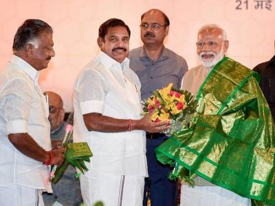 नरेंद्र मोदींचा सत्कार करताना अण्णा द्रमुक पक्षाचे नेते