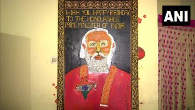 शेतातल्या धान्यांपासून मोदींचं 8 फुटी पोट्रेट, प्रियंकानं दिलं बर्थ डे गिफ्ट