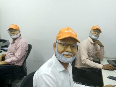देहरादून येथे पंतप्रधान नरेंद्र मोदींच्या सभेत एक चहावाला चक्क मोदींचा मास्क तोंडाला लावूनच चहा विकत होता.