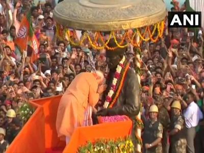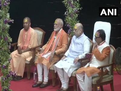 यावेळी पंतप्रधान नरेंद्र मोदींसोबत भाजपाध्यक्ष अमित शहा आणि उत्तर प्रदेशचे मुख्यमंत्री योगी आदित्यनाथ उपस्थित होते.