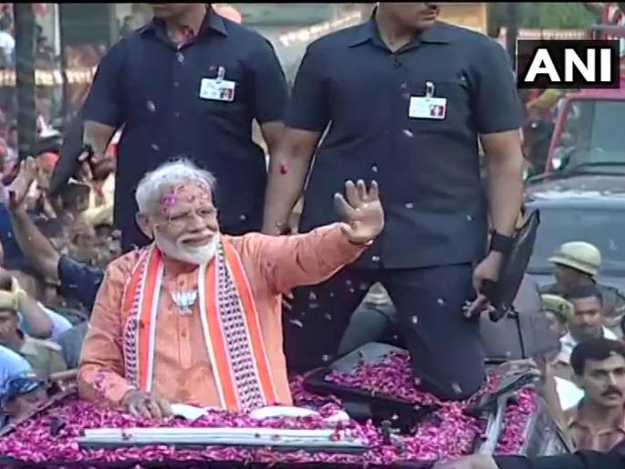 1 / 7पंतप्रधान नरेंद्र मोदी शुक्रवारी वाराणसी लोकसभा मतदारसंघातून उमेदवारी अर्ज दाखल करणार आहेत. दरम्यान, आज मोदींनी वाराणसी येथे जोरदार शक्तिप्रदर्शन केले. 2 / 7बनारस हिंदू विद्यापीठाजवळील पंडित मदनमोहन मालवीय यांच्या पुतळ्याला अभिवादन करत मोदींच्या रोड शोची सुरुवात झाली. 3 / 7मोदींच्या रोड शोसाठी वाराणसीमध्ये भाजपाच्या कार्यकर्त्यांनी मोठ्या प्रमाणात गर्दी केली होती. 4 / 7सुमारे सात किलोमीटरच्या रोड शोच्या माध्यमातून मोदी आणि भाजपाने जोरदार शक्तिप्रदर्शन केले. 5 / 7रोड शो समाप्त झाल्यानंतर नरेंद्र मोदींनी गंगा आरतीला उपस्थिती लावत गंगा आरती केली. 6 / 7यावेळी पंतप्रधान नरेंद्र मोदींसोबत भाजपाध्यक्ष अमित शहा आणि उत्तर प्रदेशचे मुख्यमंत्री योगी आदित्यनाथ उपस्थित होते. 7 / 7गंगा आरतीसाठी वाराणसीतील घाटांवर करण्यात आलेली आकर्षक सजावट