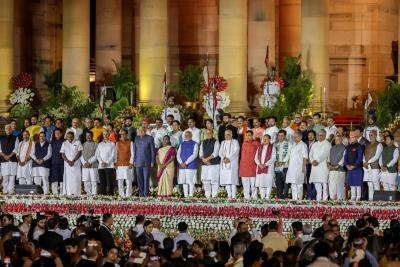 पंतप्रधान नरेंद्र मोदी यांच्यासह मंत्रिमंडळात ७२ मंत्री आहेत. त्यात ३० कॅबिनेट मंत्री, ५ स्वतंत्र प्रभार असलेले राज्यमंत्री आणि ३६ राज्यमंत्र्यांचा समावेश आहे. रविवारी या सर्व मंत्र्यांनी राष्ट्रपती भवनात शपथ घेतली. कॅबिनेट मंत्री हा संबंधित मंत्रालयाचा प्रमुख असतो, राज्यमंत्री कॅबिनेट मंत्र्याच्या मदतीला असतो. मात्र मंत्रिमंडळाच्या बैठकीत केवळ कॅबिनेट मंत्रीच उपस्थित राहू शकतो.