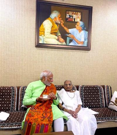 यादरम्यान, नरेंद्र मोदींनी रविवारी गांधी नगरमध्ये आई हिराबेन मोदी यांची निवासस्थानी भेट घेतली. त्यावेळी, आईसोबत गप्पागोष्टी करत त्यांनी आईचा आशीर्वादही घेतला.