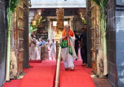 नरेंद्र मोदींनी तिरुपती बालाजी मंदिरात केली पूजा, भगवान व्यंकटेश्वराला घातलं साकडं!