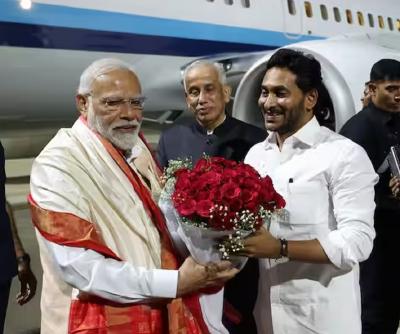 त्यावेळी राज्यपाल एस अब्दुल नजीर आणि मुख्यमंत्री वायएस जगन मोहन रेड्डी यांनी त्यांचे स्वागत केले.