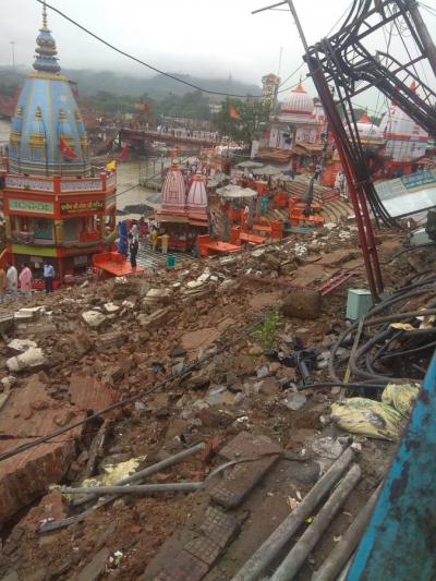 उत्तराखंडमधील पिथौरागड परिसरात ढगफुटी झाल्याने भूस्खलन झाले आहे. तर हरिद्वारमधील हर की पौडी येथे वीज कोसळून मोठे नुकसान झाले. हरिद्वारमधील हर की पौडी येथे वीज कोसळल्यामुळे ८० फुटांची भिंत कोसळली. ही दुर्घटना ब्रह्मकुंडजवळ घडली.