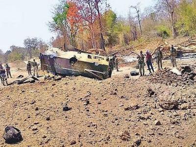 नक्षलवाद्यांनी पोलसांचे वाहन स्फोटाद्वारे उडवले. यात ८ जवानांना वीरमरण आलं.