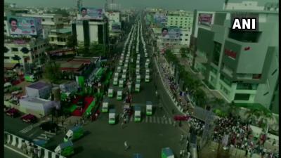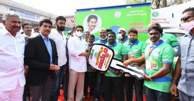 जगनमोहन यांच्यासमवेत राज्यातील इतर जिल्ह्यांत विविध मंत्र्यांच्या हस्ते या डिलिव्हरी वाहनांचे लोकापर्ण करण्यात आले. राज्यात तब्बल 9260 वाहनांचे लोकार्पण करण्यात आलंय.