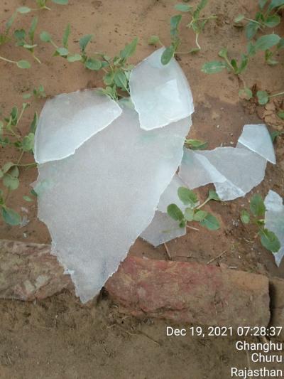 राजस्थानच्या चारू, रेवरी, अदमपूर आणि हनुमानगड येथील वातावरणात प्रचंड प्रमाणात गारवा असून शेतातील दवबिंदूंचा बर्फ झाल्याचे दिसून येत आहे.