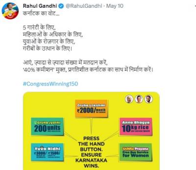 विशेष म्हणजे काँग्रेस नेते राहुल गांधी यांनीही निवडणुकांच्या आदल्यादिवशी ट्विट करुन ५ आश्वासनांच्या पूर्तीसाठी काँग्रेसला मतदान करा, राज्यात सत्तांतर घडवा, असे आवाहन केले होते.