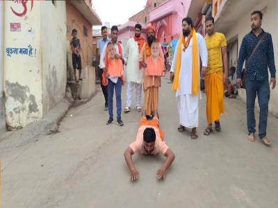 ७०० किलोमीटर पायी प्रवास केल्यानंतर साहिल मलिकने हनुमानगढी ते रामजन्मभूमी अशी दंडवत यात्रा काढली.