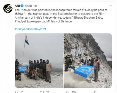 डोंक्याला येथे 18,300 फूट उंचीवर सैन्यातील जवानांनी तिरंगा फडकवला. संरक्षण दलाचे प्रवक्ते भारतभूषण बाबू यांनी येथे 75 वा स्वातंत्र्य दिन साजरा झाल्याचे सांगितले.