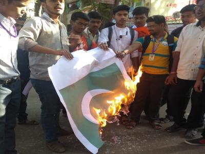 पाकिस्तानचा निषेध नोंदवत अनेकांनी रस्त्यावर उतरून पाकचे झेंडे जाळले आहेत.