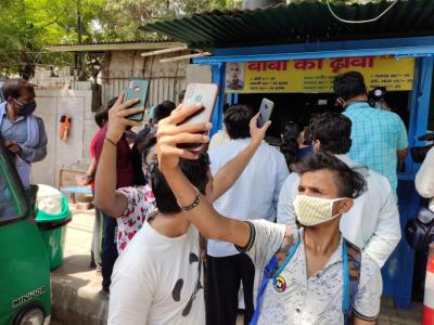 बाबांच्या ढाब्याजवळील गर्दीतील एका कचोरी व समोसे विकणाऱ्या सायकलचालकाचा फोटो आता व्हायरल होत आहे. अशांकडूनही आपण खरेदी केली पाहिजे, यांनाही मदतीचा हात दिला पाहिजे, असाच संदेश या फोटोतून देण्यात येतोय.