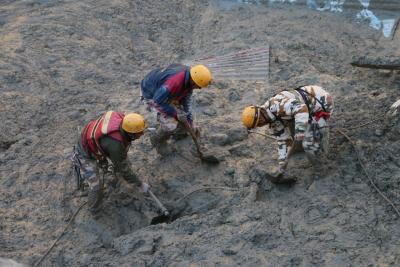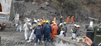 एनडीआरएफ जवान आणि आयबीटीपीचे जवान चिखलात उतरुन अडकलेल्या कामगारांचा शोध घेत आहेत, जवळपास 30 फूट खोलपर्यंत परिसरात चिखल आहे.