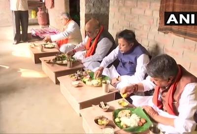 दक्षिण 24 परगना येथे पोहोचलेल्या अमित शाह यांनी कैलाश विजयवर्गीय, मुकुल रॉय आणि दिलीप घोष यांच्यासोबत बांग्लादेशातून स्थलांतरित झालेल्या कुटुंबीयांच्या घरी भोजन केले.